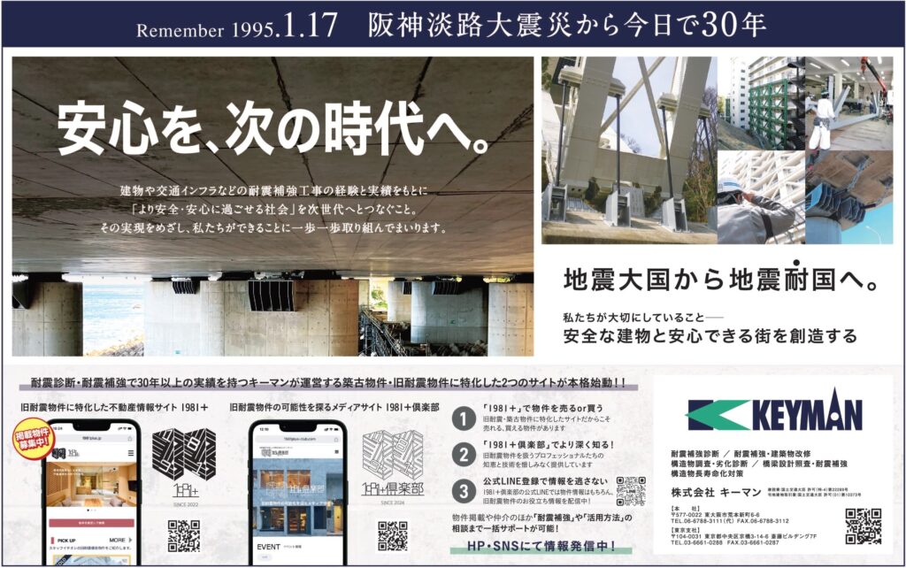 阪神淡路大震災から今日で30年。耐震補強を行う企業としてこの日を忘れず、街の安心・安全にこれからも貢献してまいります。