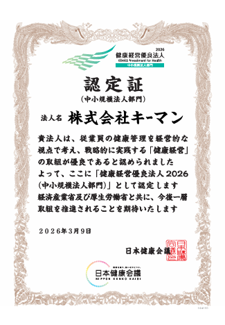 弊社は、経済産業省ならびに認定制度を運営する日本健康会議において、