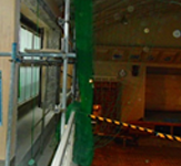 工事内容は耐震壁増設工事で、施工前の写真のように既設の壁を解体、撤去し、施工後写真のように新規に耐震壁を設置する工事でした。平日は授業を行っていた為、騒音、粉じん等に配慮し、周辺に飛散することが無いよう作業員に周知徹底して作業を行いました。苦情等も無く、無事故で完工することが出来ました。