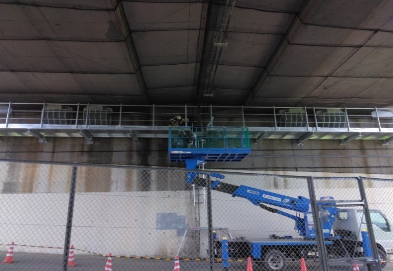工事箇所は一般道や、公園の上にかかる高架橋がほとんどの為、橋の下の土地の占有量を減らすための足場の計上や、夜間に出来る特殊な車両での作業に変更し、使用する材料を短時間で施工可能なものに変更するなどして道路の規制時間を短くし、施工方法・施工時間の調整、安全対策についてかなり留意をしました。