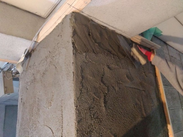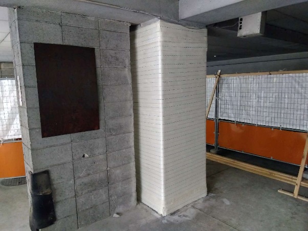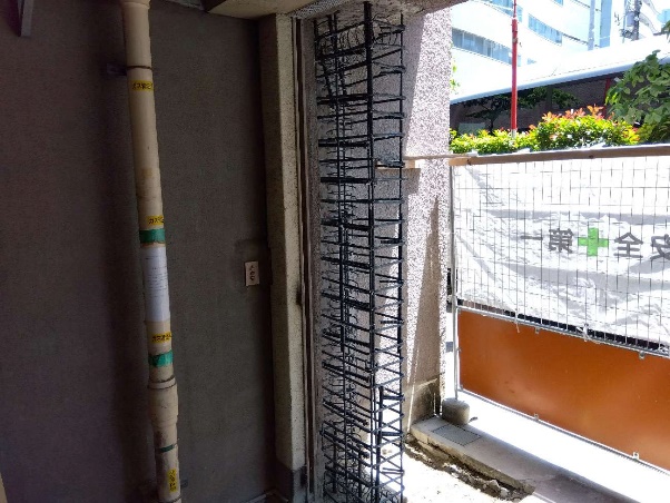 SRF工法 柱補強(仕上げモルタル塗付け→施工完了)