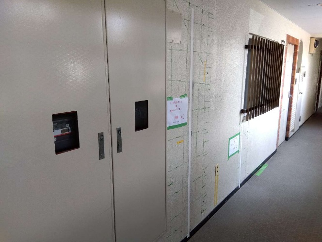 ・構造スリット工事:1~5階の共用廊下、住居窓下に部分スリットを施工:16箇所