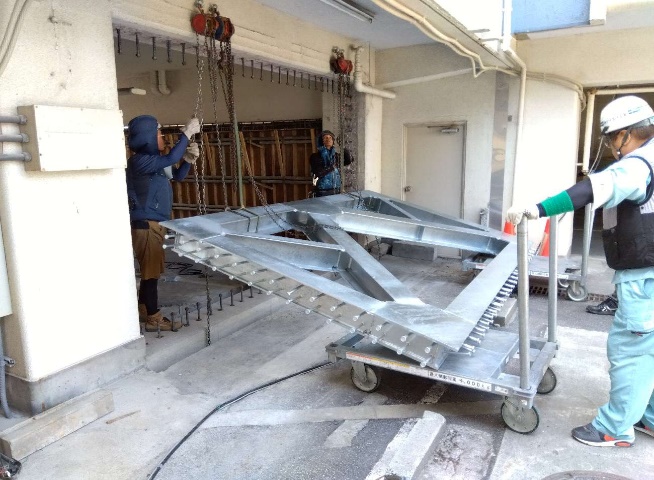 枠付き鉄骨ブレース工事 施工前→施工状況→施工完了