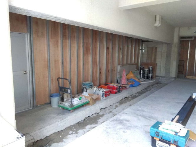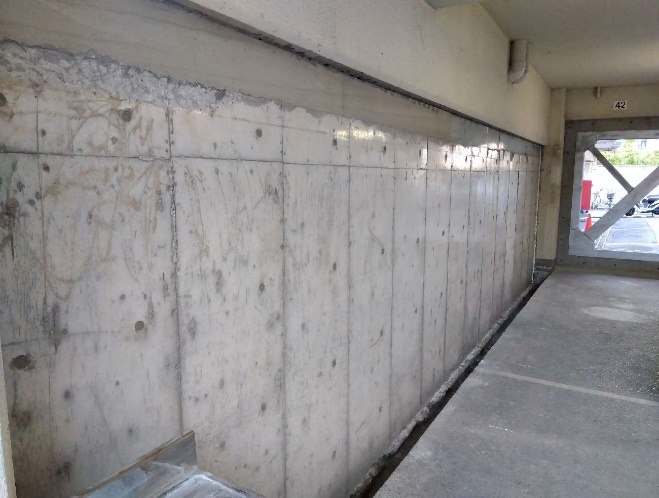 RC耐震壁補強工事 施工前→施工状況→施工完了