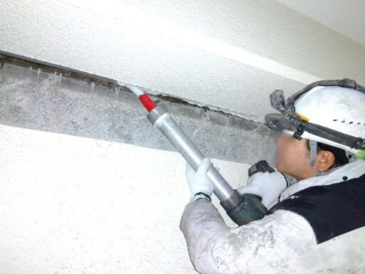 ・EXP.J箇所にスリット材設置工事:2~5.R階のスラブEXP.J交換箇所にロックウール・シーリング打設:5箇所(延べ100m)
