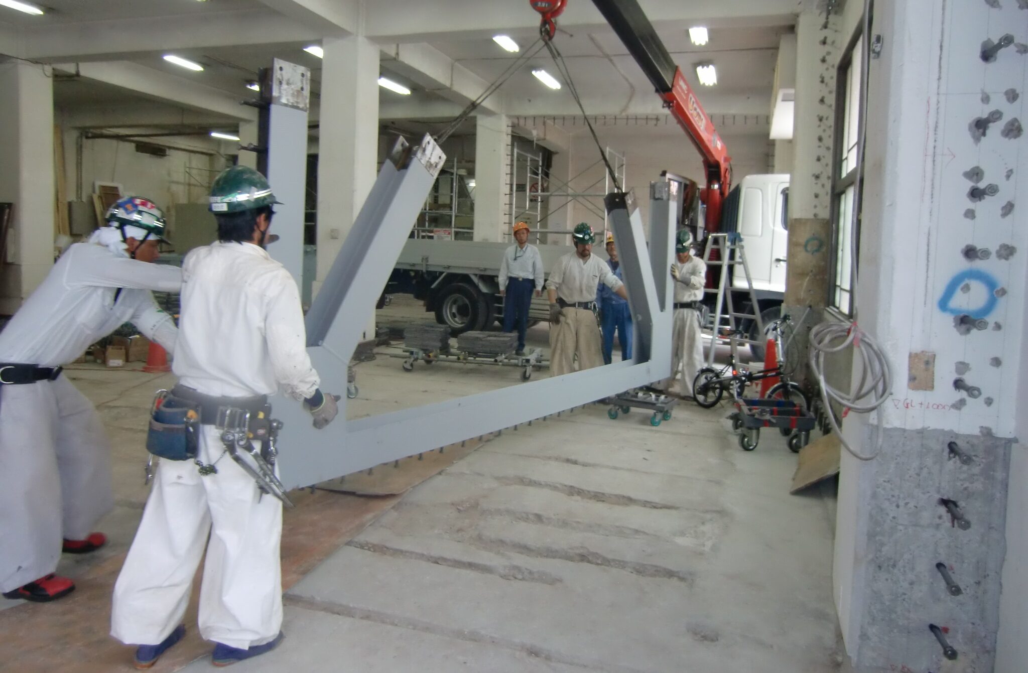 事務所ビルの営業を続けながら行うなど、制約のある難易度の高い工事でしたが、 当社の補強設計から施工という一貫体制により、厳しい条件にもかかわらず柔軟に対応し、問題を解決できました。 無事故で高品質な工事内容であると、高い評価を発注者様よりいただきました。