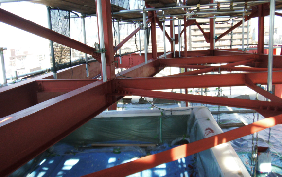 耐震補強、改修工事、屋上の広告塔の塗装工事がありましたが計画と準備を入念に行い、工事が始まってからはロスなく最短で施工ができました。