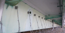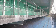 材料運搬を効率的に行うため、材料運搬システムを吊足場内に設置して、材料運搬の省力化と工期短縮を実現できました。