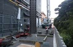 今回の補強工事は昭和前半の建築物である為、当時の資料が少なく、調査・実測などに時間をしっかりかけてから施工計画を立て工事着工となりました。 工場内施設の耐震補強工事に伴い耐震壁新設工事は騒音、粉じんを考慮し、土日作業をメインとし構内従業員に配慮致しました。 写真の外付ブレース取付作業におきましても安全第一で作業を行い、施設の配管設備等の損傷を防ぐ為搬入計画、養生、作業手順を関係業者と密に行い無事に無事故無災害で設置完了致しました。